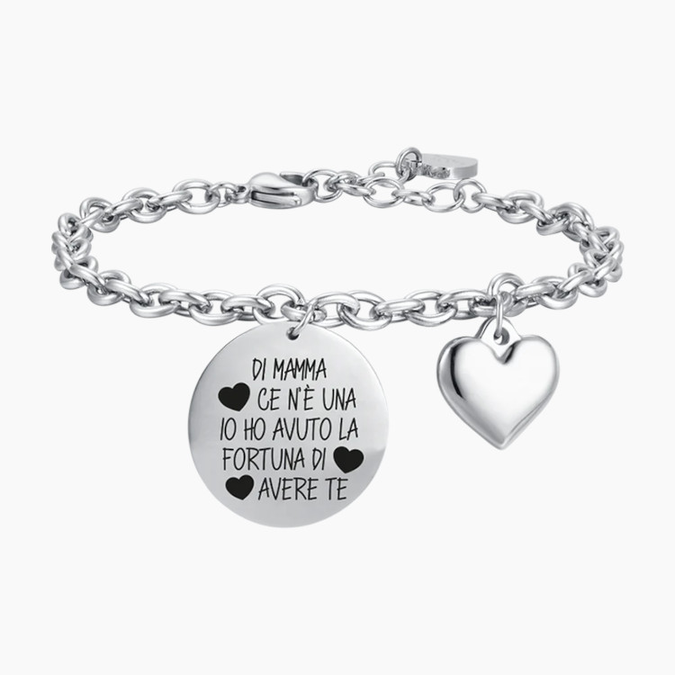LUCA BARRA BRACCIALE DONNA IN ACCIAIO CON PIASTRA CON SMALTO NERO E CHARM CUORE "DI MAMMA C'E N'E UNA IO HO AVUTO LA FORTUNA DI AVERE TE"